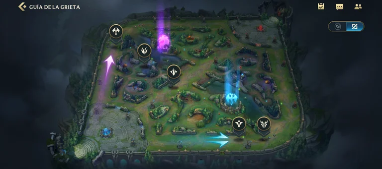 El mapa de Wild Rift está dividido en tres carriles principales y la jungla: superior, central, inferior y jungla. Cada carril tiene su propia dinámica y requerirá diferentes estrategias. Toma tu tiempo para entender cómo funciona cada carril y qué tipo de campeones son más adecuados para cada uno.